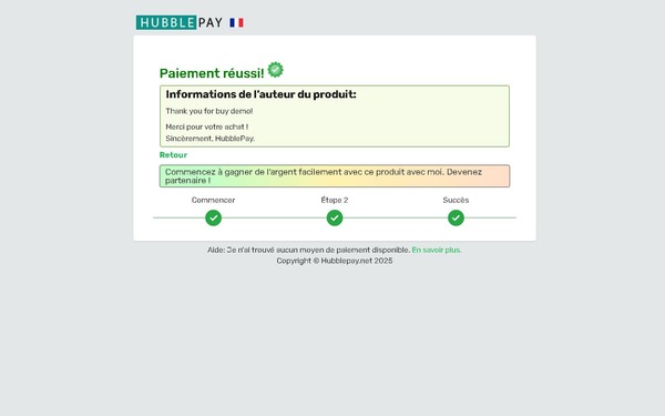 - Le système enregistre leur identifiant dans les cookies pour la page de paiement de tous vos produits (si plusieurs).