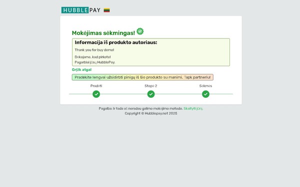 - Lankytojas pasirenka produktą ir apmoka per SetHubble.