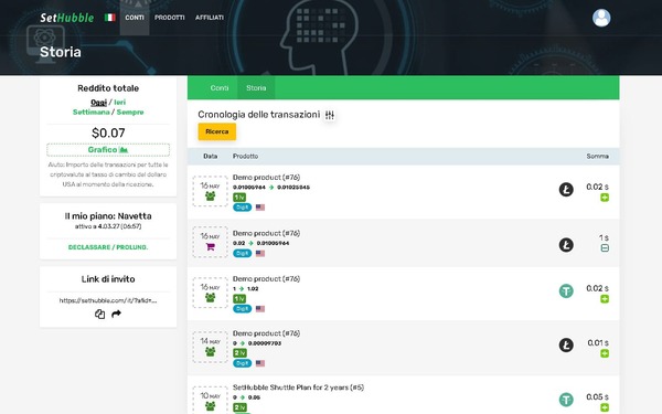 La piattaforma SetHubble combina un sistema di pagamento standard con la possibilità di far crescere il tuo business o progetto con l’aiuto di altre persone — partner (referenze) e dispone anche di molte funzionalità uniche che aiutano la crescita della tua attività.