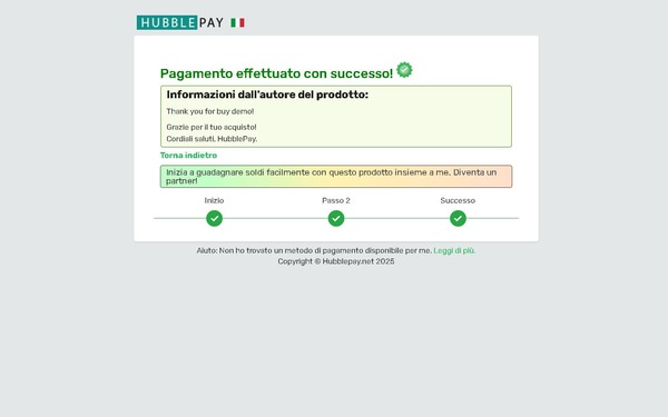 - Il visitatore seleziona un prodotto e paga tramite SetHubble.