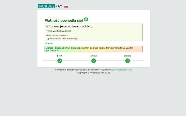 Lub możesz włączyć powiadomienia o swoim programie partnerskim dla kupujących twoje produkty po dokonaniu płatności, co na pewno przyciągnie do ciebie partnerów spośród klientów.