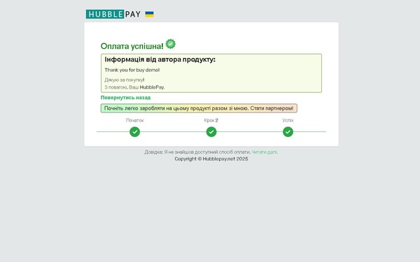 - Після оплати спрацьовує партнерська програма, і реферал(и) отримує(ють) винагороду.