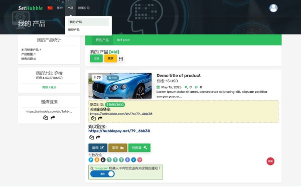 SetHubble 平台将标准支付系统与借助其他人发展您的业务或项目的能力结合在一起 — 合作伙伴(推荐人),并且还具有许多帮助业务增长的独特功能。